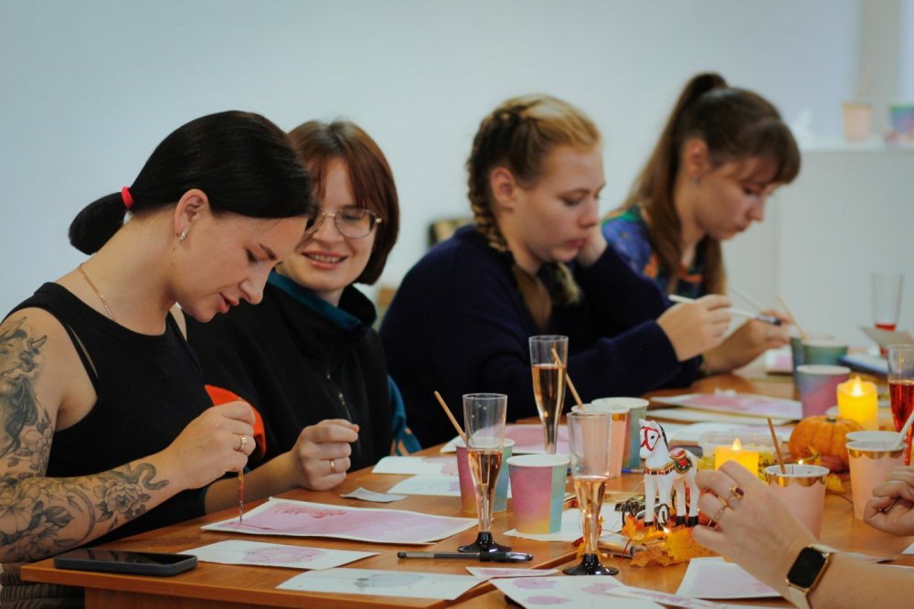 11 октября 2025 в 15:00 прошёл 2-й мастер-класс по рисованию винном для взрослой аудитории. Руководила процессом художница Екатерина Адельберг (Гуща). Вашему вниманию представляется фотоотчет.